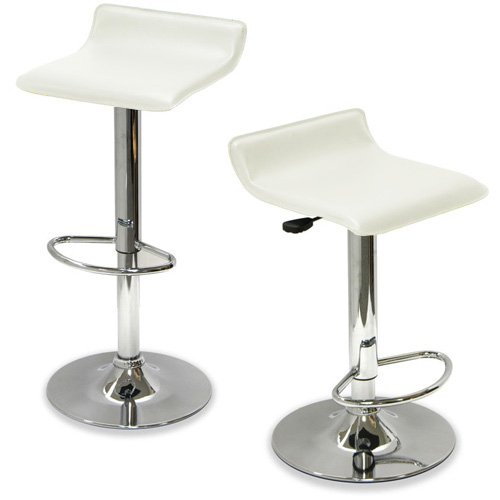 Set of 2 Adjustable Bar Stool Scoop Seat in White Finish Review